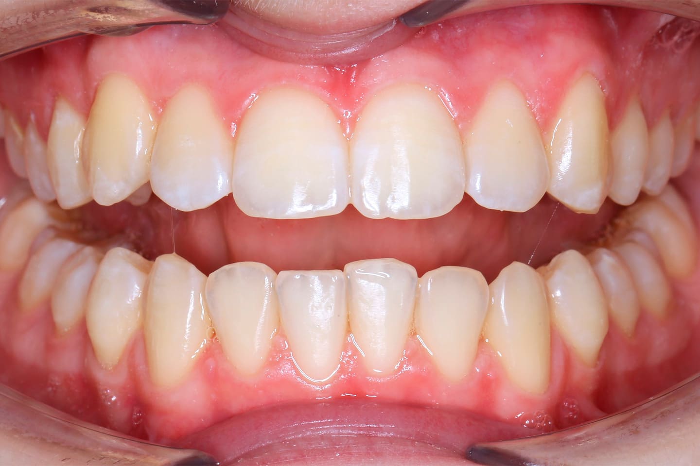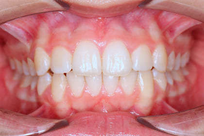 За 9 месяцев достигнуто анатомически верное положение зубного ряда. Девушка искренне улыбается, не испытывает проблем с уходом за зубами.