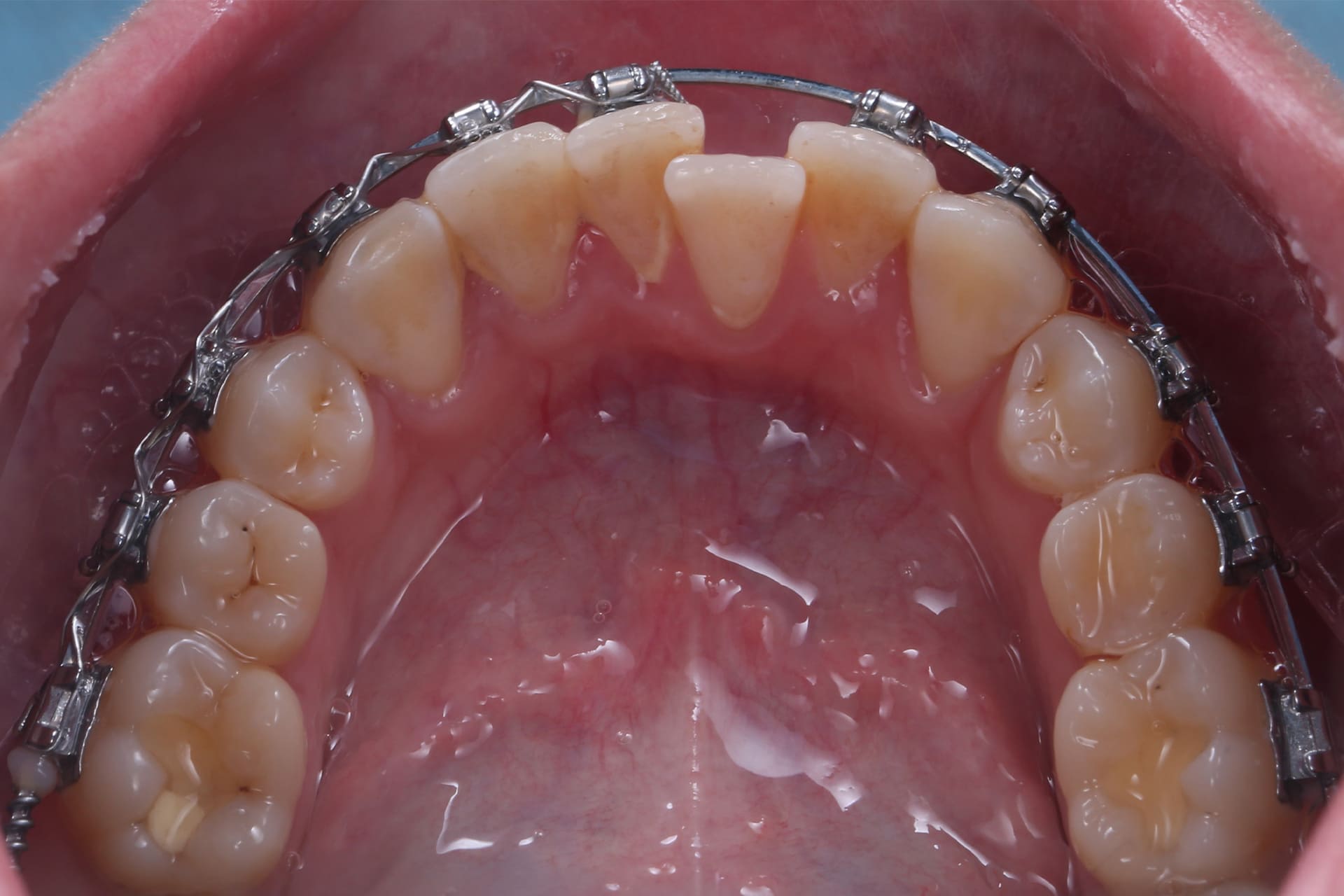 - После осмотра, снимка КТ и всех диагностических расчетов нашей командой принято решение о долечивании пациента без снятия ранее установленной брекет-системы.