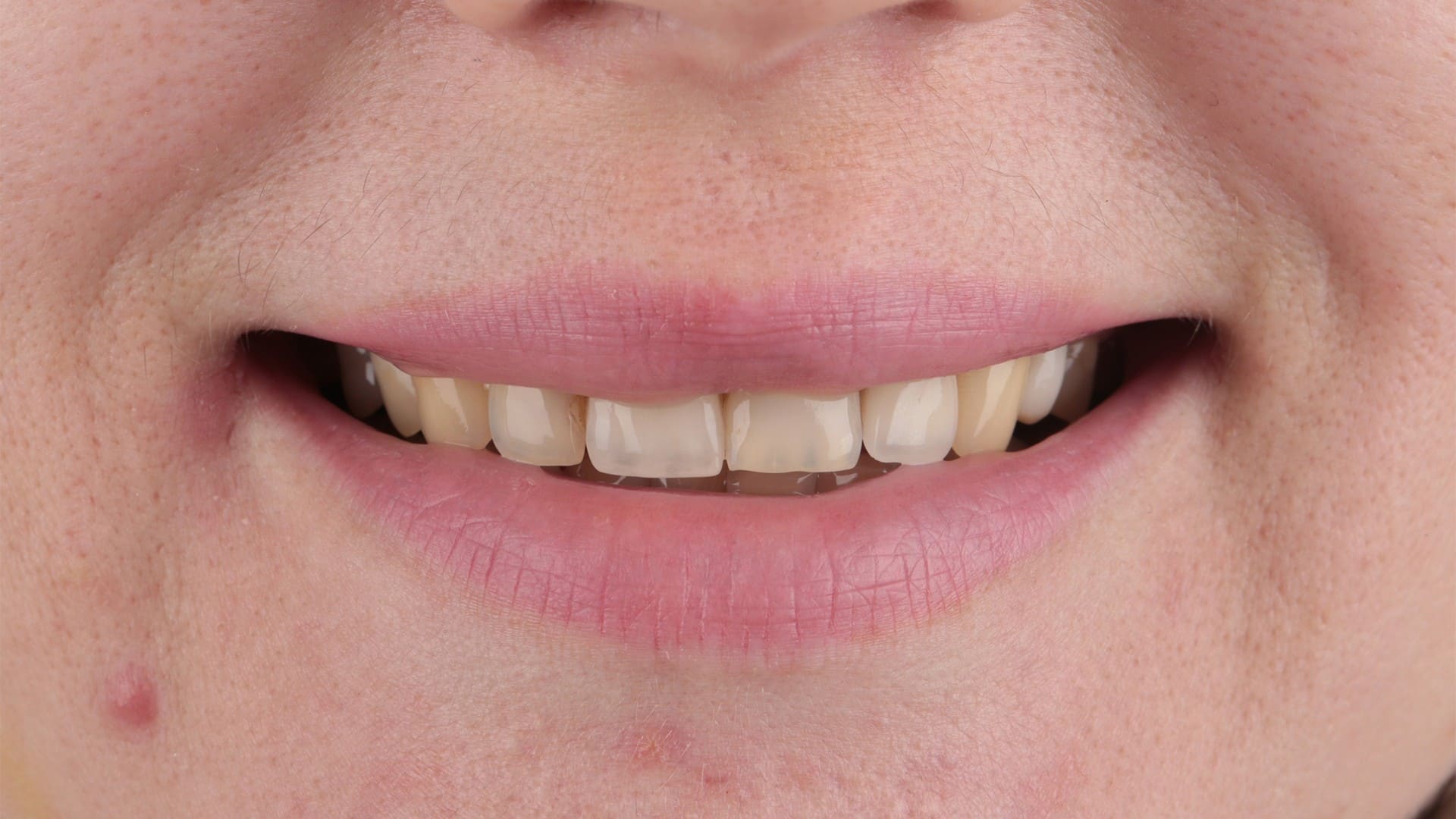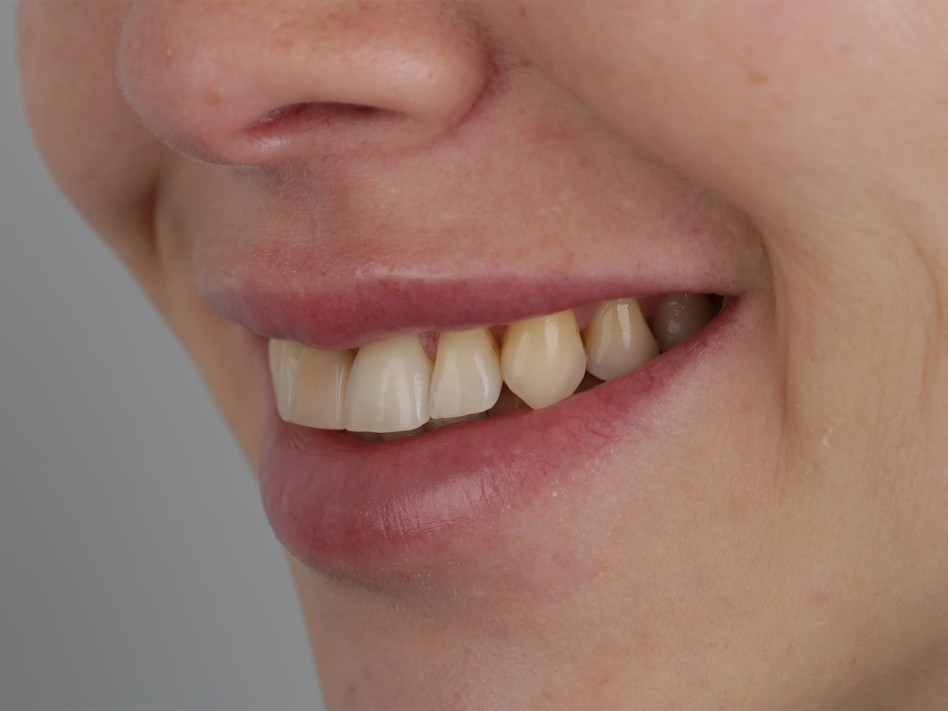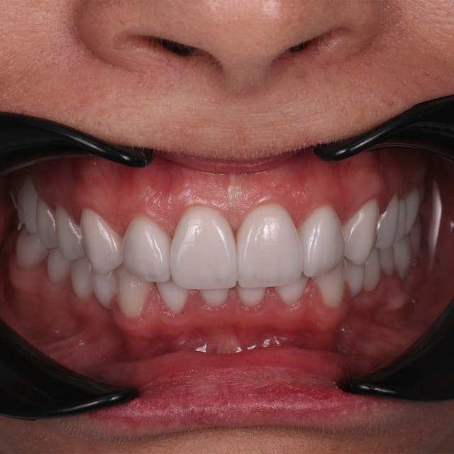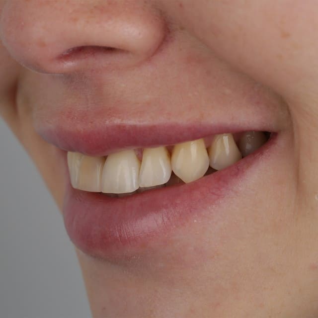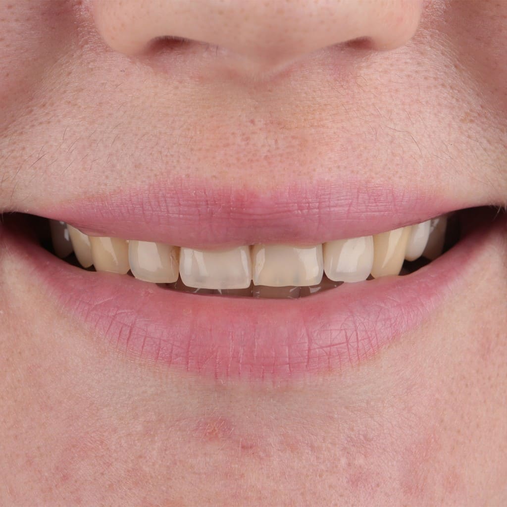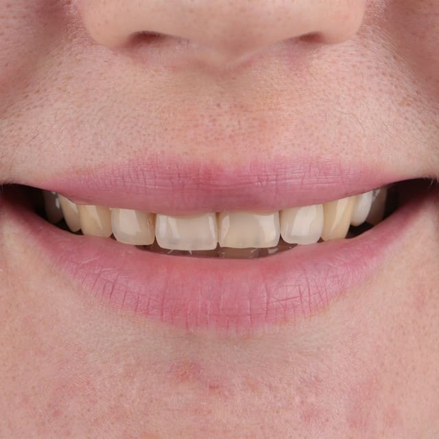 За счет восстановления длины и объема зубов мы создаем «каркас» для мягких тканей. Овал лица становится четче, губы — объемнее, морщинки вокруг рта разглаживаются.